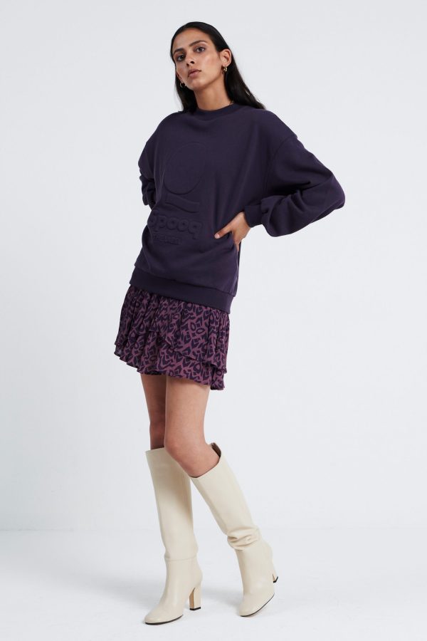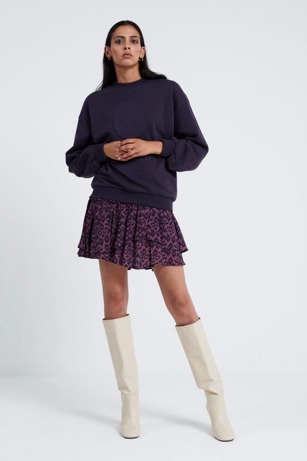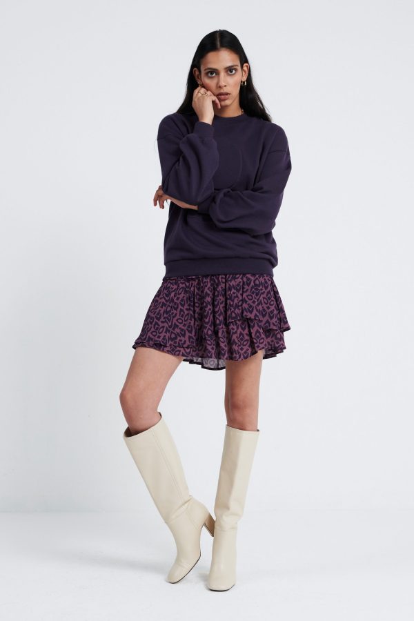 De Aya Skirt, is een gevoerde mini rok. De rok heeft een overslag ruffle aan de voorzijde en is voorzien van een blinde ritssluiting. Model is 175 en draagt maat S