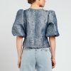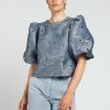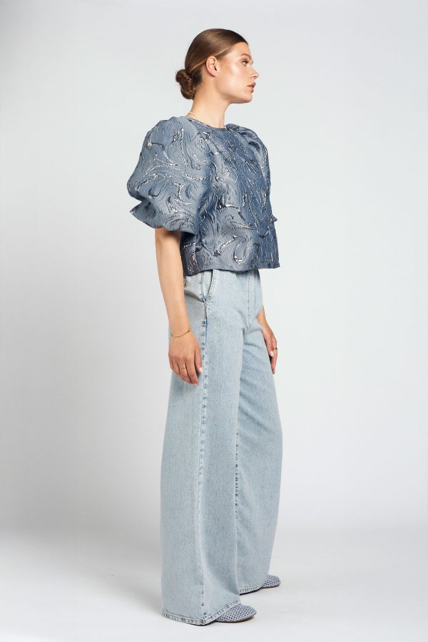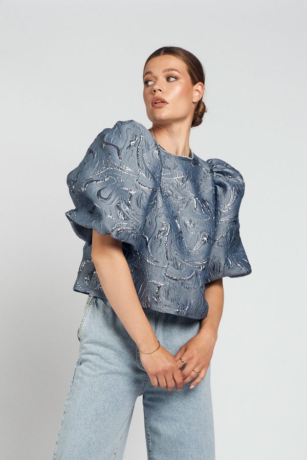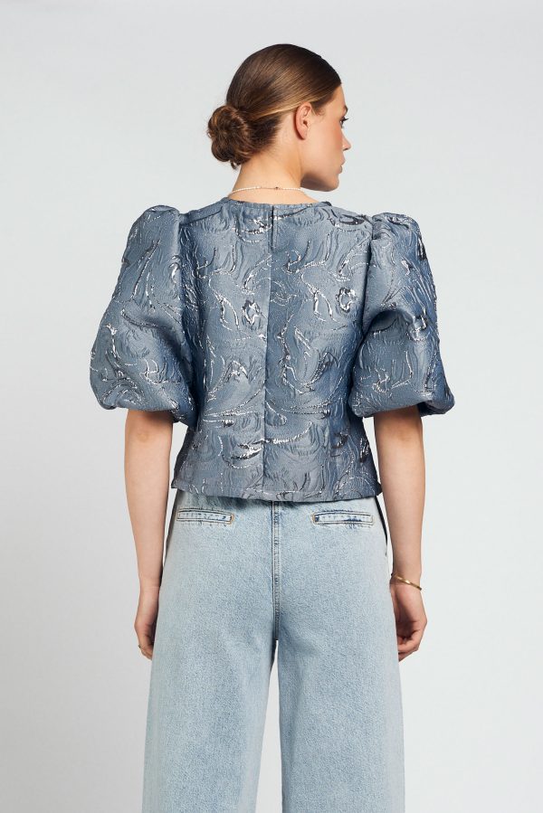 Maak een statement met de Bobby Top in een elegante Steel Blue Jacquard. Deze bijzondere top is een perfecte mix van structuur en luxe, met een rijke jacquardstof die subtiel glanst en een abstract patroon laat opvallen bij elke beweging.De volumineuze pofmouwen en licht boxy fit geven de top een moderne, vrouwelijke uitstraling – ideaal voor zowel een avond uit als een bijzondere gelegenheid overdag.