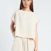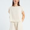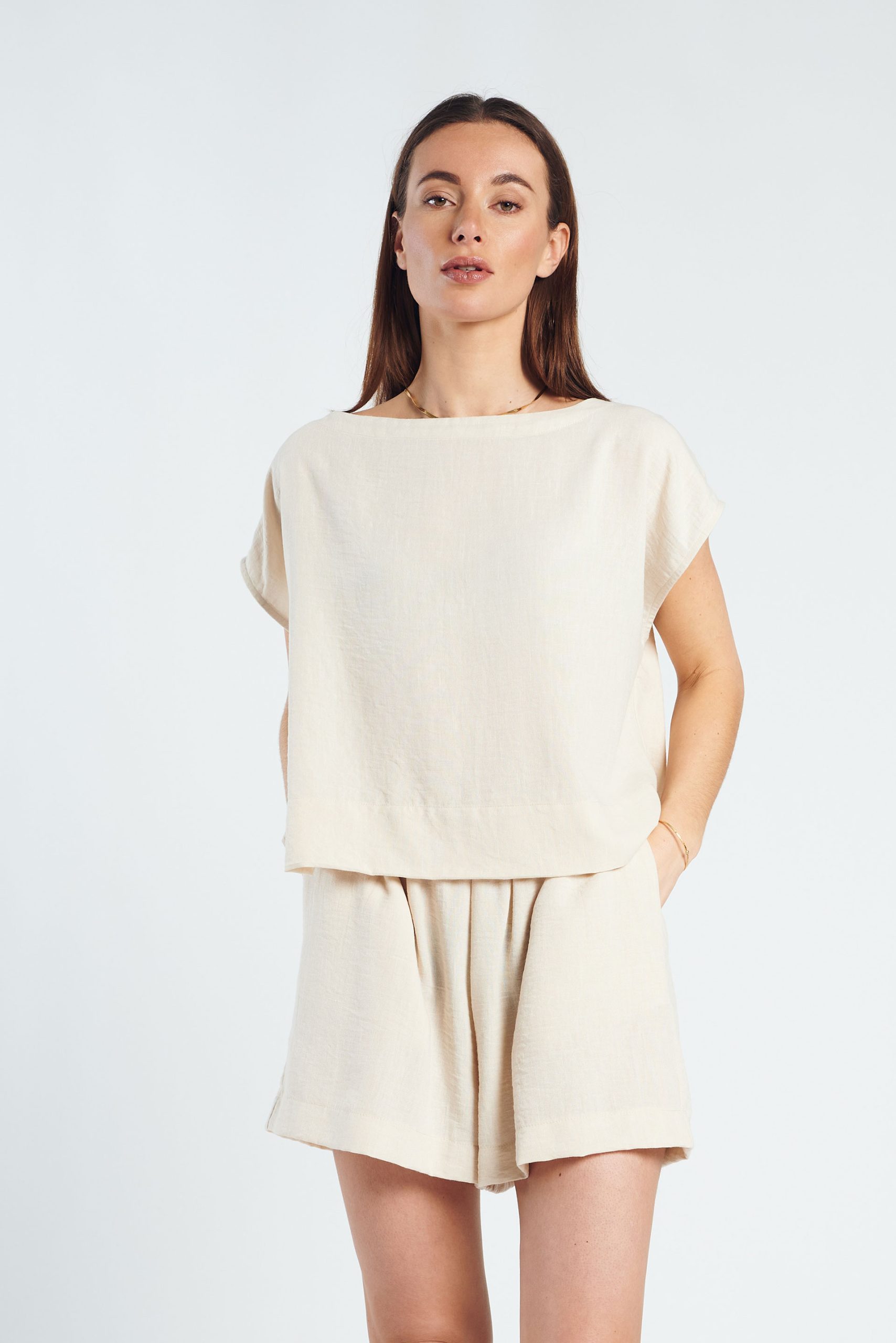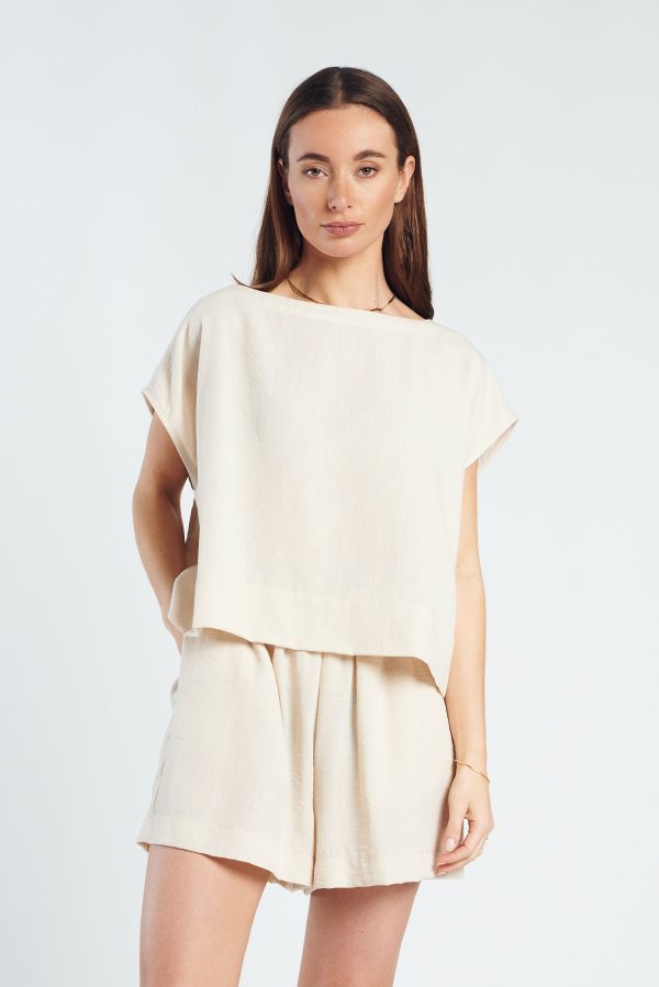De Chloe Top is een luchtige essential met een minimalistische, verfijnde uitstraling. De zachte beige tint geeft de top een tijdloze en rustige look. Gemaakt van een lichte, soepelvallende kwaliteit die comfortabel draagt en elegant valt. De losvallende pasvorm en subtiele kapmouwtjes zorgen voor een nonchalant, modern silhouet.