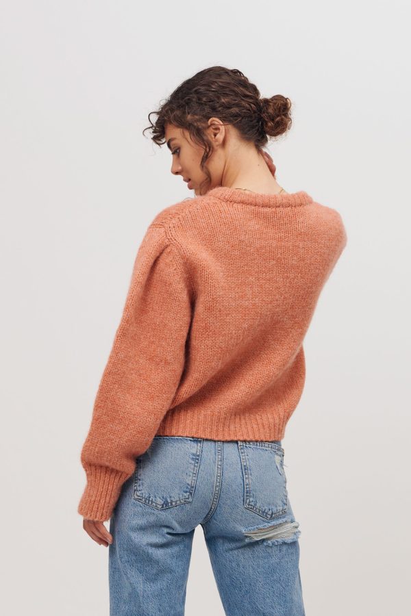 Onze prachtige oranje Dalia knitwear is de perfecte combinatie van stijl en comfort! De oranje kleur geeft de trui een levendige uitstraling en maakt het een echte blikvanger.