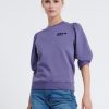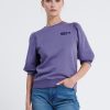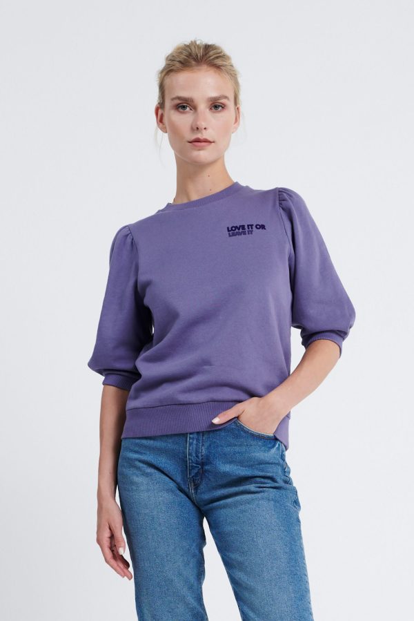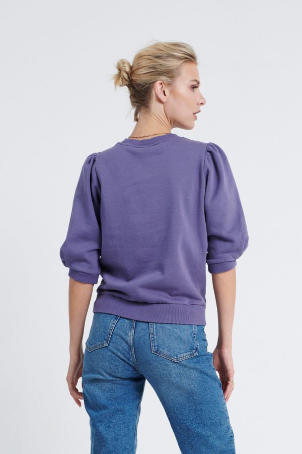 De Dolly. Het model heeft korte gepofte mouwen die een sterk silhouet neerzetten. Model is 175 en draagt maat S
