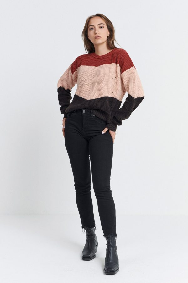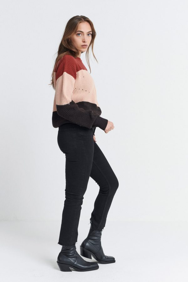 De Loiz trui is gemaakt van een wolmix in een luxe kwaliteit. Het mooie ingebreide patroon, ballonmouwen en de diverse kleuren maken hem een echte eyecatcher.