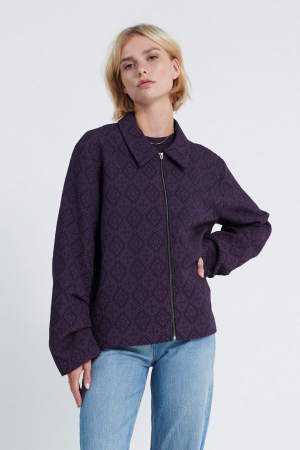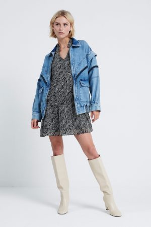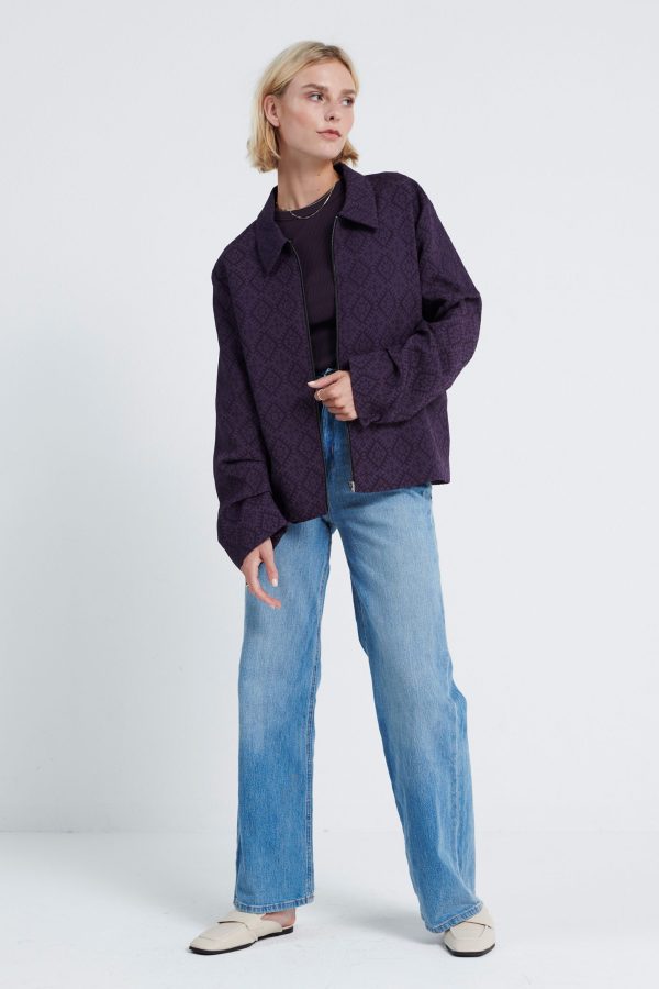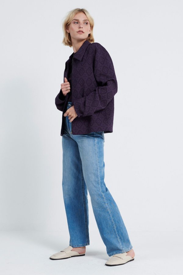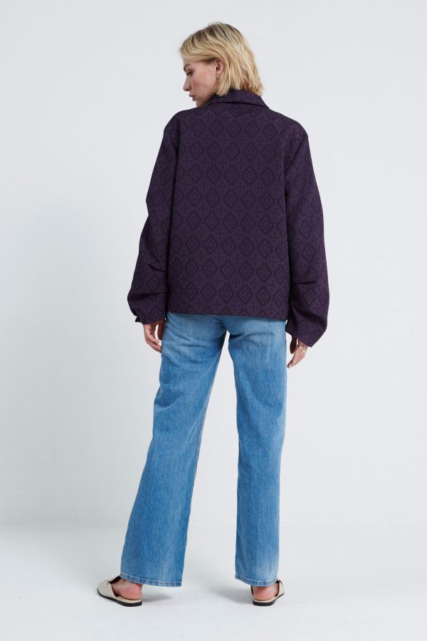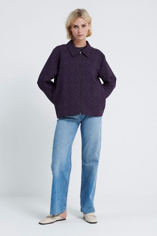 De Lou Jacket heeft een rustige all over print en een oversized pasvorm. De jacket is voorzien van een kraag. De mouwen vallen iets langer en hebben een plooidetail. Model is 175 en draagt maat S.