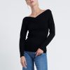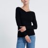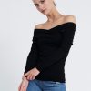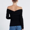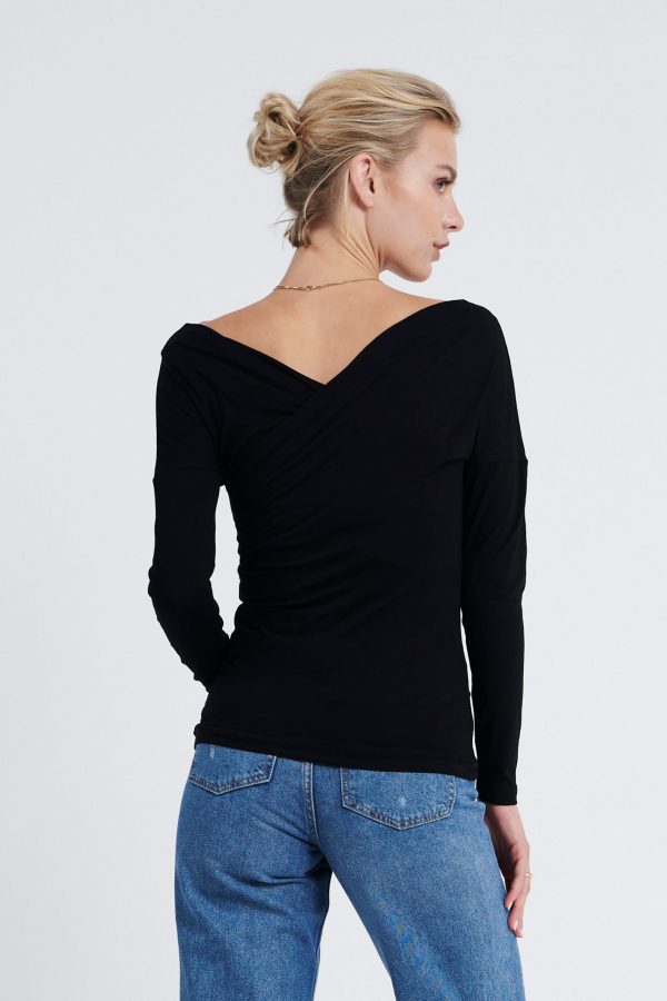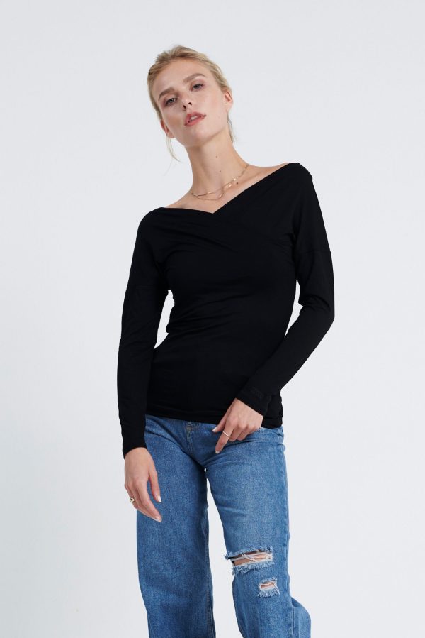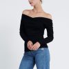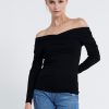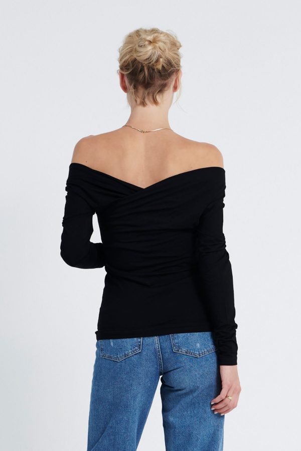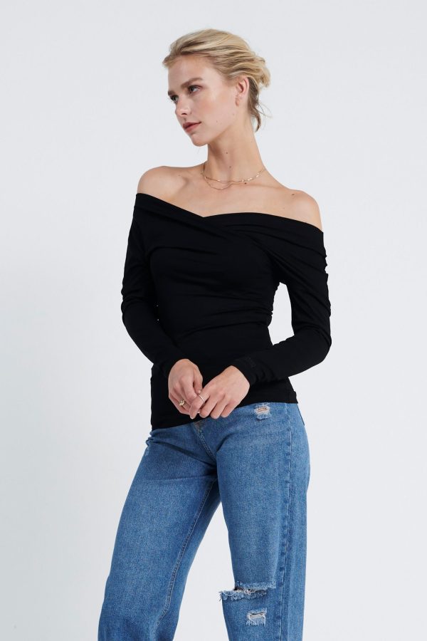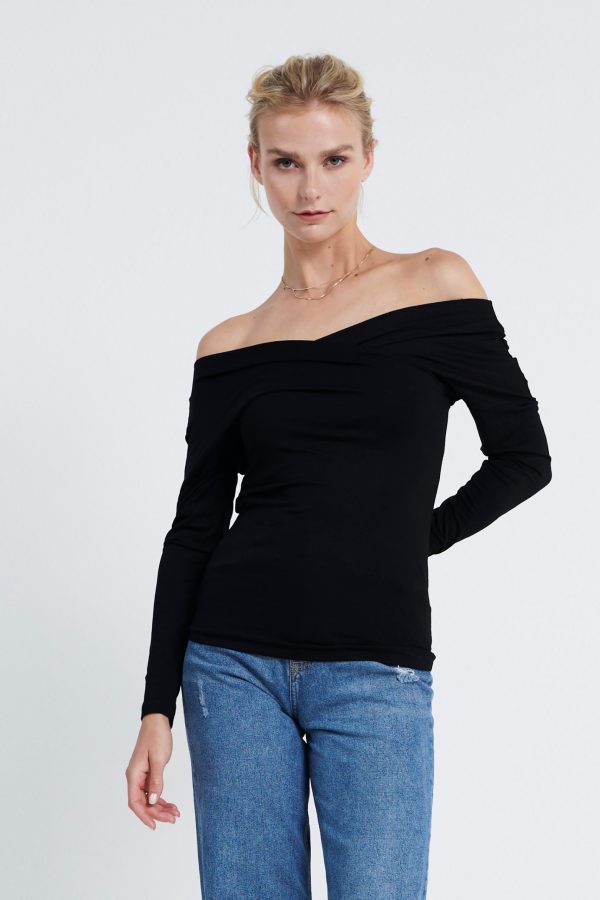 Long-sleeved jersey Off-shoulder top. It has a figure-skimming silhouette with an off-the-shoulder neckline and cross-over paneling at the chest. Team yours with slim pants and sandals for an unstudied look.