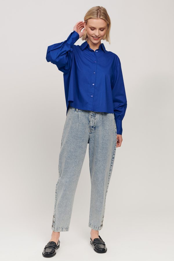 Eyecatcher! Stijlvol en comfortabel is de ‘Mirah Blouse’. Deze cropped blouse heeft een knoopsluiting aan de voorkant en is voorzien van lange manchetten die de blouse een elegante en verfijnde uitstraling geven.