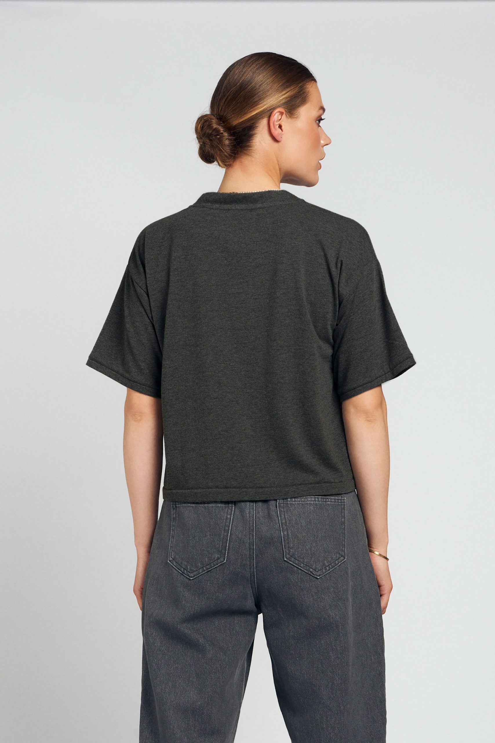 • Design: Boxy fit met korte mouwen en ronde hals
