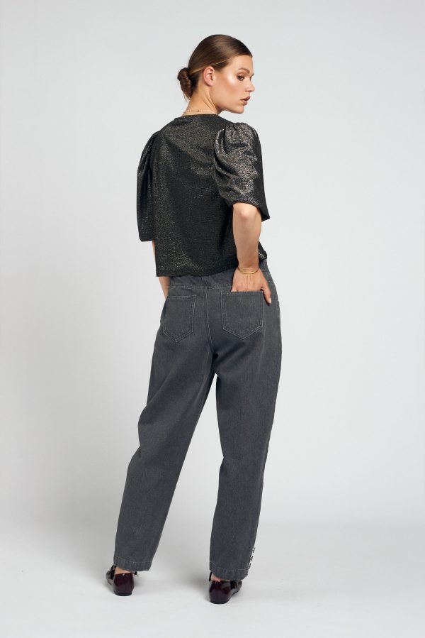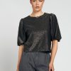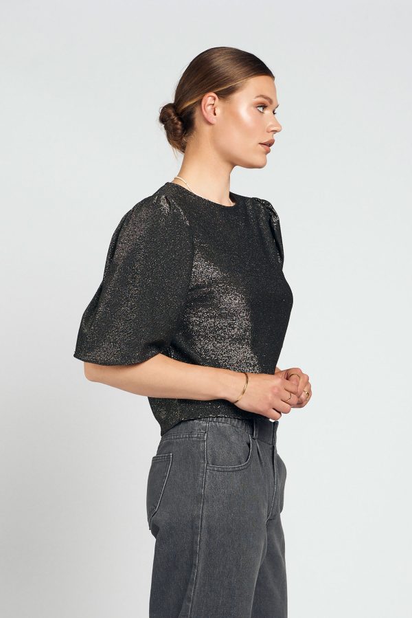 De Sophie top lurex is een elegant statement piece met subtiele glans. Dankzij de lichtgewicht lurex-stof en de korte pofmouwen straalt deze top klasse en speelsheid tegelijk uit. Perfect voor feestelijke gelegenheden, diners of een avondje uit.Details: