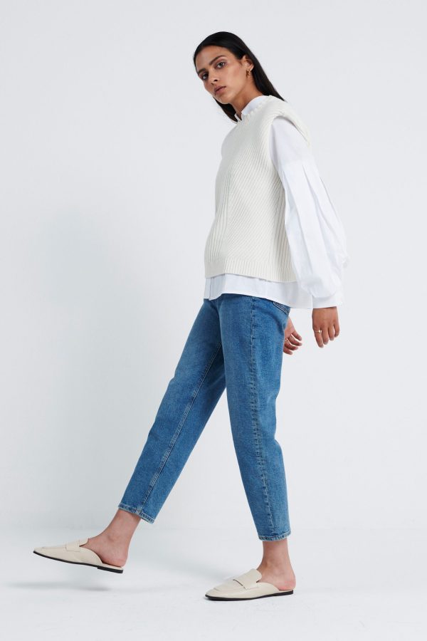 De Spencer heeft een knus en stijlvolle look met een luxe gebreide stof. De schouders hebben opvulling waardoor je een oversized model creƫert. De Spencer is leuk te combineren met de Nadie blouse. Model is 175 en draagt maat S.