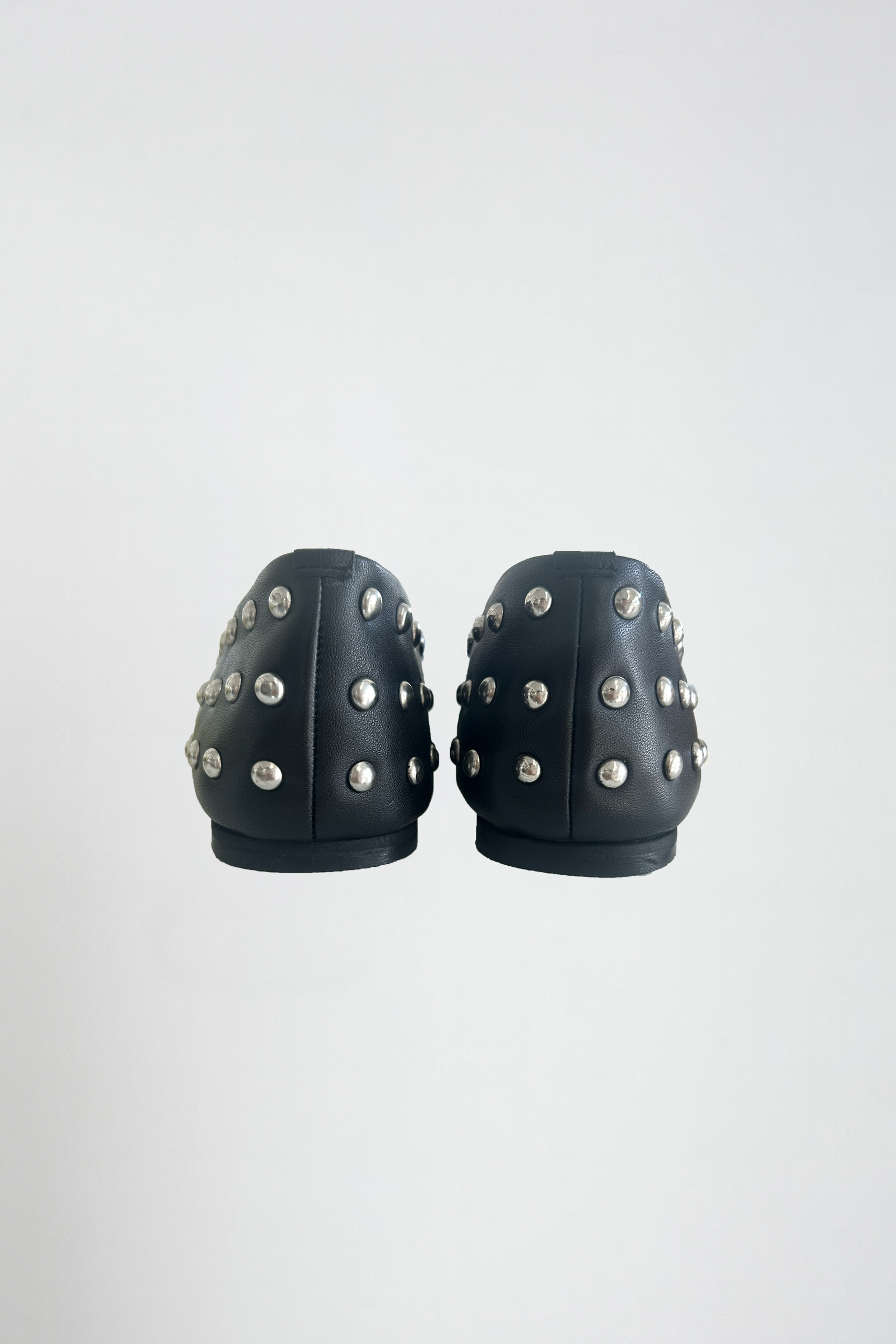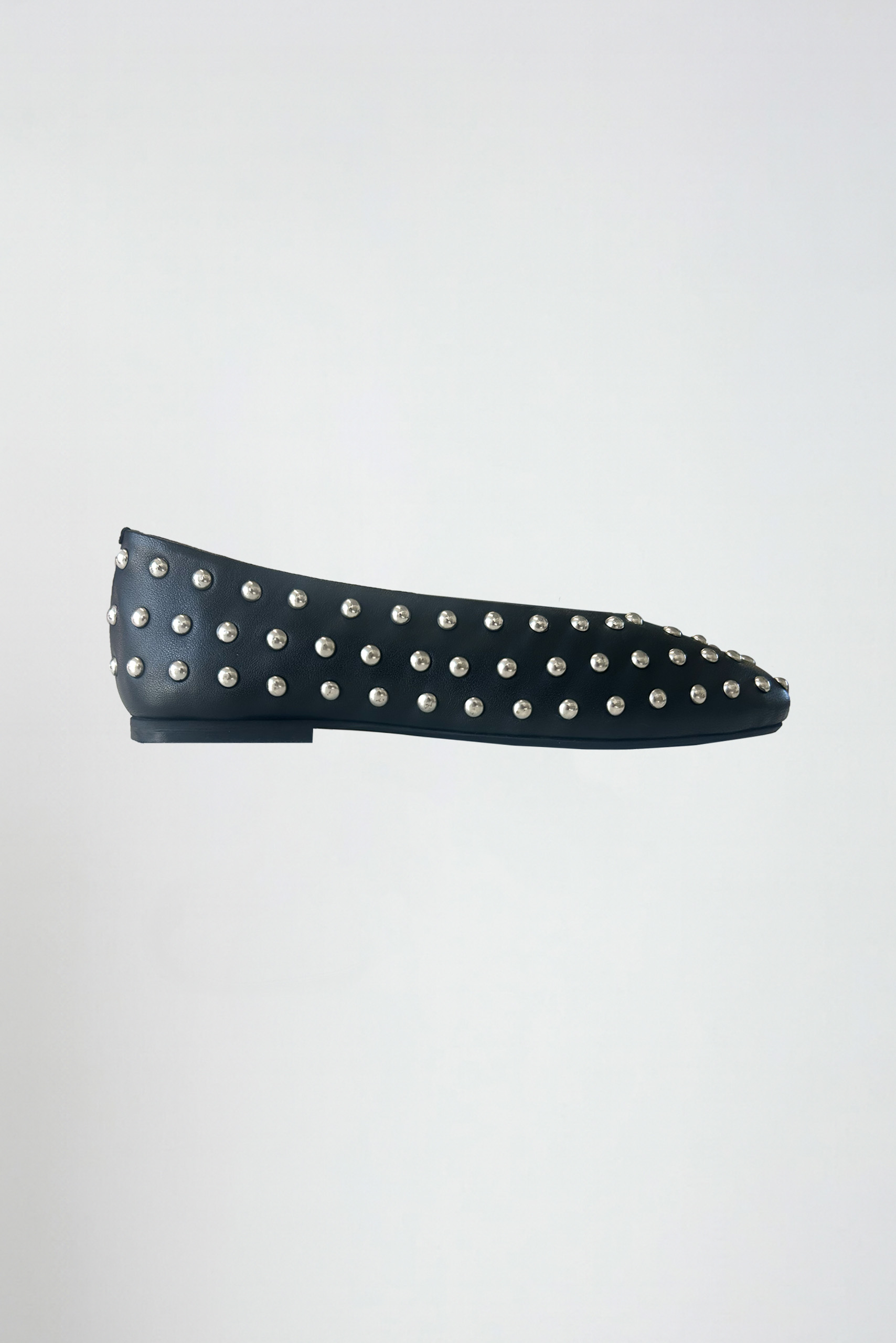Deze stoere maar stijlvolle ballerina is gemaakt van 100% leer en zit heerlijk zacht. De zilverkleurige studs geven de schoen een speelse, opvallende look perfect om elke outfit nét dat beetje extra te geven. Dankzij de ronde neus en flexibele zool draag je ze met gemak de hele dag.
