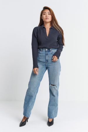 This season’s must-own layering staple, the Eva Tank, is a fitted ribbed knit with a high crew neckline for a clean look. It’s a timeless style that works with just about everything in your wardrobe.