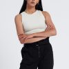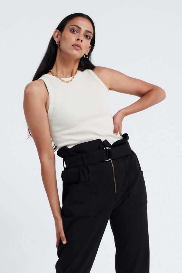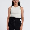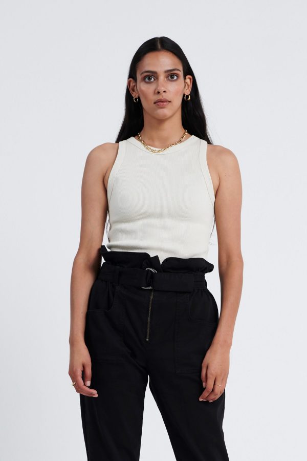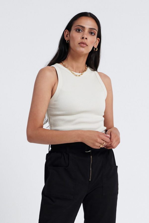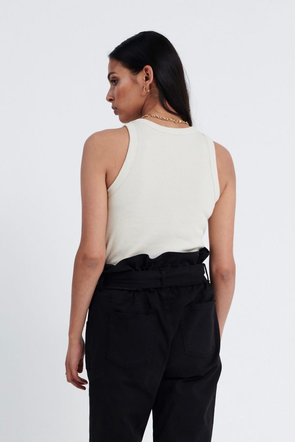 De Tiff Top, is een geribbelde tanktop in de vorm van een racer Model is 175 en draagt maat S