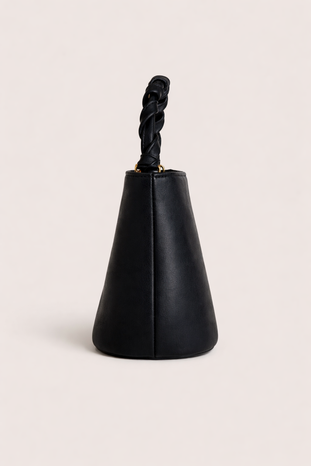 De Tiny BagĀ is een minimalistische must-have met een krachtige, tijdloze uitstraling. Het compacte bucketmodel in diepzwart geeft elke outfit direct een elegante en moderne touch.